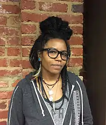 Jones moved to New York in 1995 to pursue fashion design and worked for Harriette Cole before finding her calling as a fine artist. She was a kinetic (performance) painter, painting to live music on stage, with the Brooklyn Bohemian scene at venues such as the Brooklyn Moon Cafe that incubated the beginnings of careers such as Mos Def, Common, Saul Williams, Erykah Badu, Kevin Powell, and Sarah Jones.[3][4][5][6] Her work appears as the cover art for Saul Williams' book, The Seventh Octave and his album, Amethyst Rock Star, and she collaborated with him on his book, S/HE.[7][8]