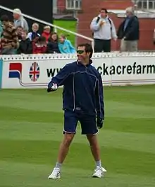 An aggressive opener, he once held the record for the most ODI centuries of any English player, and for the fastest half-century in English Twenty20 cricket.[3] Trescothick is also an accomplished slip fielder and occasional right-handed medium pace bowler who has kept wicket for England in five ODIs,[4] and deputised as England captain for two Test matches and ten ODIs.