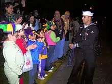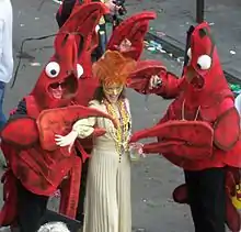 Lake Charles hosts a family-friendly Mardi Gras celebration with nine parades.[41] With over 50 krewes, it is second only to New Orleans in the number of krewes in Louisiana.[42] The Lake Charles Mardi Gras celebration is unique in that it is the only place in Louisiana where the public is invited to see the costumes of all the krewes in one place, at the Lake Charles Civic Center.[43] Mardi Gras began in Lake Charles as early as 1882 when King Momus landed on the lakefront to begin the celebration.[44] With the onset of the World Wars, Mardi Gras in Lake Charles was not celebrated as much, but was revived in the latter part of the century. This celebration begins in Lake Charles on January 6 each year. The last parade is the Krewe of Krewes Parade in downtown Lake Charles.[45] Mardi Gras in Lake Charles regularly draws 150,000 people.[46] In addition, Mardi Gras can be enjoyed in Lake Charles year round at the Mardi Gras Museum of Imperial Calcasieu, which features elaborate costumes and an interactive float.[47] This museum houses the world's largest collection of Mardi Gras costumes.[48]