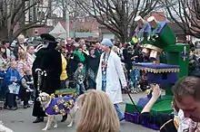 Baton Rouge hosts eight parades, including the Spanish Town Parade, Krewe of Southdowns, Krewe of Mutts (dog parade), Krewe Mystique, and Parades such as the Krewe of Orion, Krewe of Artemis, Krewe of Jupiter, and Krewe of Poseidon(new for 2010) which offer more of a traditional New Orleans-style parade. All parades take place downtown, with the exception of the annual Southdowns parade, which runs through the Southdowns subdivision just south of Downtown.