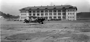 ![]() Curtiss JN-4 Jenny taking off from Mare Island Naval Shipyard Airfield, with Mare Island Marine Barracks in background | |