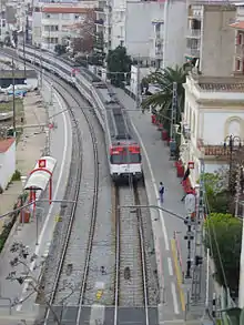 The R1 is a line of Rodalies de Catalunya's Barcelona commuter rail service, operated by Renfe Operadora. It runs northwards from the Barcelona area to the southern limits of the province of Girona, passing through the coastal Maresme region. Since 2014, some services have been extended further north towards Portbou, near the French border. These services are designated RG1 and are considered part of the Girona commuter rail service. The line had an annual ridership of 28 million in 2016,[2] achieving an average weekday ridership of 102,214 according to 2008 data.[1]