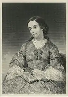 Margaret Fuller was especially known in her time for her personality and, in particular, for being overly self-confident and having a bad temper.[157] This personality was the inspiration for the character Hester Prynne in Nathaniel Hawthorne's novel The Scarlet Letter, specifically her radical thinking about "the whole race of womanhood".[158] She may also be the basis for the character Zenobia in another of Hawthorne's works, The Blithedale Romance.[51] Hawthorne and his then-fiancée Sophia had first met Fuller in October 1839.[159]