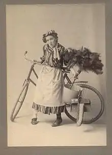 At the age of 16 Margaret Gast (original German name "Margareta Nagengast") emigrated from Bavaria in the German Empire to the United States. From 1890 til 1901 she was one of the dominating female racing cyclists in the States. In 1900 she established four endurance records, about 500, 1000, 2000 and 2500 miles. She also rode motor-paced cycling races. Later on, "Little Duchy" as she was called, rode races on motorcycles herself and made stunts.