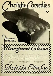Gibson was sometimes credited or otherwise identified under at least seven other names, such as Patricia Palmer, Patsy Palmer, Margie Gibson, Marguerite Gibson, Ella Margaret Lewis, Ella Margaret Arce, or Pat Lewis. She appeared in 147 films between 1913 and 1929.[1]