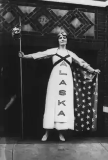 Press photo of Margaret Vale (Mrs. George Howe), niece of Pres. Wilson, in Suffrage parade, New York. Oct. 1915; here she represents Alaska, which granted women's suffrage in 1913.