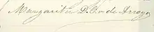 Margarita Diez-Colunje y Pombo was born in Buenaventura, 10 June 1838. Her parents were José María Diez-Colunje Caballero, a native of Panama, and Natalia Pombo O'Donnell,[1] niece of Enrique O'Donnell, Conde de La Bisbal,[2] and cousin of Leopoldo O'Donnell, 1st Duke of Tetuan and 1st Count of Lucena,[3][4] and I Conde de Lucena.[5] She was born in Buenaventura because her father was working at the time as a customs administrator in that city.[6] Her baptismal godparents were her cousin, Julio Arboleda Pombo, and María Josefa Mallarino de Holguín,[7] mother of President Carlos Holguín Mallarino.