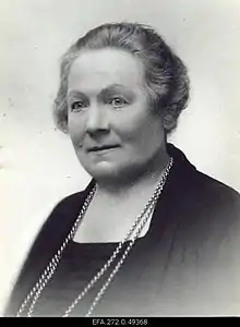 During the first German occupation in 1918, she was imprisoned. Later, she was a member of the Estonian Red Cross General Government and the head of the fundraising department, one of the founders and chairman of the Young Women Christian Association, the founders and chairwoman of the Women's Home Guard 1927–1936, and one of the founders of the Housewives Movement.[1][2]