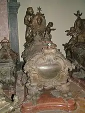 In Joseph's first reaction to receiving the news of his wife's death, he had told some of his intimates some remarks which imply regrets for the coldness he had shown to her. He further brought himself to tell his sister-in-law, Duchess Maria Antonia, that his wife had been "for so many reasons worthy of respect".[10] Maria Josepha was buried in the Imperial Crypt in Vienna, but Joseph did not attend her burial.[11]