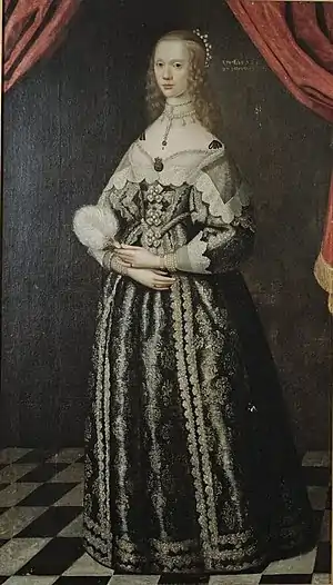 Maria Sofia De la Gardie was born to count Jacob De la Gardie and Ebba Brahe. She was the sister of Magnus Gabriel De la Gardie, the favorite of Queen Christina, Queen of Sweden and the sister-in-law of Princess Countess Palatine Maria Eufrosyne of Zweibrücken, the cousin of the queen. She was born and raised in Swedish Estonia, where her father was governor of Reval. In 1643, she married baron Gustaf Gabrielsson Oxenstierna (1613–1648), nephew of regent Axel Oxenstierna (1583–1654) who succeeded her father as governor of Estonia. As was the custom in 17th century Swedish nobility, she kept her own name also after marriage. Both her own family and the family of her spouse was extremely wealthy. During his absence, she managed his estates.[2] [3]