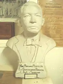 Mariano Perfecto (1853 - November 3, 1913) was the fifth Governor of Ambos Camarines (1910–1913). Known as a prolific writer, he is considered as the "Father of Bikol Literature," and the "Father of Bisayan Literature." He published the first newspaper in the Bikol language, An Parabareta (1899–1900) and set up the first printing press in the Bikol region, the Libreria y Imprenta Mariana. His literary output ranged from translations of religious tracts, novenas to poems, short dramas and linguistic works both in the Ilonggo and Bikol languages.
