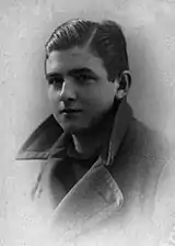 Mariano frequented schools in Pamplona and Andoain; in the early 1930s he entered a preparatory college for Seminario Mayor in Saturrarán.[13] Following 2 years he resigned religious career and entered Instituto of Pamplona; the civil war broke out when Zufía was in midst of bachillerato course.[14] He volunteered to requeté, but following 2 months on the frontline in Sierra de Guadarrama he fell ill and was treated in a hospital in Burgos. When released he resumed education and completed another grade, until in January 1937 he volunteered to requeté again.[15] Followed few months he returned home and completed the bachillerato. In late 1938 he applied to aviation school but was rejected due to poor eyesight.[16] Instead, as 18-year-old, he was drafted. Zufía applied to the alferéz provisional school in Pamplona, where he remained assigned until after the war. Following few months of service in Valencia in late 1939 he resigned from the army and took courses in commerce. In 1942 he was employed at junior position in the Pamplona branch of Banco de Bilbao.[17]