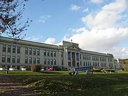 For 30 years, Marianopolis was located near McGill University at 3647 rue Peel, where it had moved in 1945 from a previous building that was destroyed by fire. In 1975, the college relocated to a larger campus on the site of the former Sulpician school Séminaire de Philosophie, at 3880 Côte des Neiges. In 2007, Marianopolis returned to its original campus in the prestigious historic building at 4873 Westmount Av., designed by J.O. Marchand, a prominent Quebec architect of his time and creator of such architecturally significant buildings as the old Municipal Courthouse and the Peace Tower of the Parliament of Canada. The building was built first for the Institut pédagogique, a superior normal school to train female teachers and after as the mother house of the Congregation before returning to academic use. The campus’ facilities were modernized and a double gymnasium was built underground. In 2017, the College undertook the largest renovation project in its history to equip its near-century-old building with modern safety features, heating, ventilation, and air-conditioning, while upgrading teaching, learning and working spaces across campus.[2]