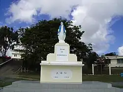 Marie, Queen of Rodrigues (Marie, Reine de Rodrigues) is a six-foot tall statue of the Virgin Mary erected on the heights of Pointe Canon, Rodrigues. The statue is a noted landmark of Port Mathurin and is a gathering place for Catholics on the island as well as a tourist and historical site. The cement statue was inaugurated on May 1, 1954.
