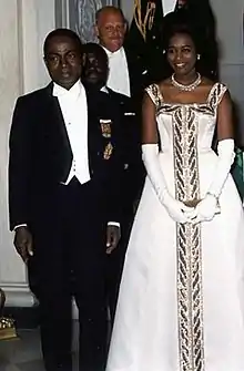 ![]() Marie and her husband Félix Houphouët-Boigny at the White House attending a state dinner with U.S. President John F. Kennedy and his wife First Lady Jacqueline Kennedy in 1962 | |