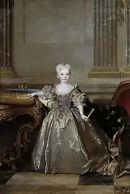 For a little over 4 years following her marriage, she was one of the most important ladies at her father's court, outranked only by Queen Maria Theresa, Maria Anna, the Dauphine (from 7 March 1780), Elizabeth Charlotte, Duchess of Orléans and the two daughters of the Duke of Orléans, Princesses Anne-Marie, Madame Royale (until 10 April 1684) and Élisabeth-Charlotte, Mademoiselle de Chartres then Madame Royale.[5] However, in May 1685, her 11-year-old half-sister Louise-Françoise de Bourbon, Mademoiselle de Tours (1673–1743) was married to Louis de Bourbon, Duke of Bourbon (1668–1710).[6] As the groom was the heir to the title of Prince of Condé, and the Bourbon-Conti branch descended from the Bourbon-Condé branch of the royal house, the new duchess outranked the Princess of Conti,[5] leading to tension between the sisters.