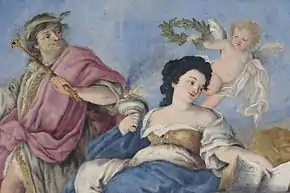 In Savoy her name was Italianised to Maria Giovanna Battista di Savoia and she was known as Madama Reale. This name was a reference to the style Madame Royale from her native France, and had been used by the late Christine Marie.[21] Marie Jeanne Baptiste was praised as being an attractive and intelligent woman.[23] Almost a year after the marriage the 21-year-old duchess gave birth to a son on 14 May 1666 who was named Victor Amadeus in honour of Victor Amadeus I, Duke of Savoy the child's grandfather and husband of Christine Marie.[2] In the same year, her sister Marie Françoise married Afonso VI of Portugal.[10] The two sisters remained close all their lives. Prior to her husband's death, Marie Jeanne Baptiste played little part in the politics of the time. In his reign, her husband carried out various improvements to the royal residences and left a great architectural legacy in Savoy. The couple also ordered the construction of various churches in Turin.[24]