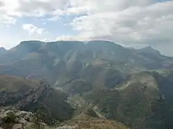 Mariepskop (also Marepe or Maripekop), at 1,947 m above sea level, is one of the highest peaks in the northern Drakensberg,[note 1] and the highest point of the Blyde River Canyon, South Africa. It is situated at the junction of three conservation areas, namely the Mariepskop Forest Reserve, Mariepskop State Forest, and the Blyde River Canyon Nature Reserve. The mountain is bordered by sheer cliff faces on several sides, and is composed of Proterozoic sedimentary rocks of the Transvaal Supergroup. It is named for the 19th century Pulana chief, Maripe Mashile,[note 2] whose tribe used the mountain as a stronghold. Some infrastructure and roads were built in the 1950s to service a military radar station. Mariepskop is flanked by Tshwateng (1,628 m) at the opposite side of the Blyde River, and by Hebronberg (1,767 m) in the south.