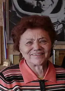 Marina Lavrentievna Popovich (née Vasiliyeva; 30 July 1931 – 30 November 2017) was a Soviet Air Force colonel, engineer, and decorated Soviet test pilot. In 1964, she became the third woman and the first Soviet woman to break the sound barrier.[1] Known as "Madame MiG", for her work in the Soviet fighter, she set more than one hundred aviation world records on over 40 types of aircraft over her career.[1][2]