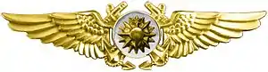 The Marine Aerial Navigator insignia is a military badge of the United States Marine Corps that is issued to Marine Corps enlisted personnel who complete flight training as a navigator on board Marine Corps aircraft. The Marine Aerial Navigator insignia is not issued to U.S. Naval aviation personnel and is the only independent aviation insignia issued to the Marine Corps.