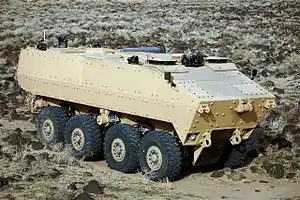The Marine Personnel Carrier (MPC) is a wheeled armored personnel carrier under development for acquisition by the United States Marine Corps. The program was canceled in 2013 but resurrected in 2014 as part of phase one of the Amphibious Combat Vehicle.[1]