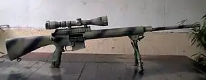 A designated marksman rifle/special purpose rifle (DMR/SPR) variant intended to "meet the requirement for a 5.56mm rifle to engage targets up to 800 meters with optics.".[9] This rifle would replace the older M14s currently in use as designated marksmen rifles in the Philippine Army.