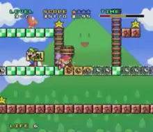 Wanda is controlled via a point-and-click interface with the Super Famicom Mouse accessory, influencing objects on the screen when clicked. For example, Wanda can solidify block outlines for use as barriers or bridges for Mario to walk across, and can destroy certain obstacles and enemies. The player can also click Mario to turn him around and reverse his direction. The player is awarded points for defeating enemies, collecting items, and for any remaining time when the level is completed. Extra lives may also be awarded.
