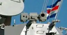 Developed by Kollmorgen in the 1990s, the Mark 46 Mod 0–1 OSS is a stabilized imaging sensor. It improves ships' situational awareness, aids in navigation, enables the crew to visually identify and track targets, and supplements the main combat sensors. The OSS is particularly useful in congested waters with multiple contacts and during nighttime operations. The OSS supports the Mark 34 GWS by providing a very accurate range using its laser. During an engagement, it can be used to visually determine if the threat has been eliminated. A shock isolation unit is designed to keep the OSS operational in the event the ship is hit.[6][7]
