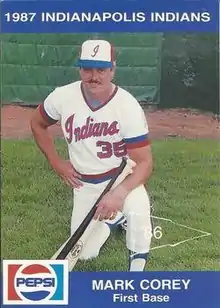 Corey then bounced around among several Major League organizations, played one season in Nippon Professional Baseball with the 1984 Kintetsu Buffaloes (where he hit three homers in 31 games, but batted only .215), and sat out the 1985 season while nursing his injured knee. He retired after the 1987 minor league season. although he played for the Orlando Juice of the Senior Professional Baseball Association in 1989.[2]
