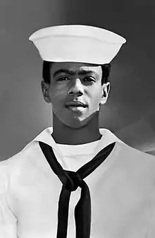 Initially, Essex's experiences in the Navy were positive. He performed his compulsory training at the Naval Training Center with exemplary results. His superiors recommended he enroll in the Navy Dental Center. Essex accepted this advice and was apprenticed as a dental technician in April 1969, specializing in endodontics and periodontics.[12] He soon formed a close and ongoing friendship with his white supervisor, Lieutenant Robert Hatcher. However, Essex soon learned that bigotry from many of the white servicemen towards blacks (both overt and discreet) was a general everyday occurrence for blacks serving within the Navy. Shortly after his enlistment, Essex obtained a job as a bartender at an enlisted men's club named the Jolly Rotor, where he discovered that certain rooms were off-limits to blacks.[13] In one letter to his mother, Essex wrote his experiences of racial relations within the Navy were "not like [he] thought [they] would be. Not like Emporia. Blacks have trouble getting along here."[14]