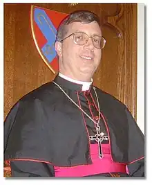 Haverland was elected and consecrated bishop ordinary of the Diocese of the South on January 31, 1998, succeeding the deceased William Lewis. The chief consecrator was the metropolitan, the Most Rev'd. Michael Dean Stephens, with the Right Rev'd. John T. Cahoon Jr. (Mid Atlantic States) and the Right Rev'd. Victor Manuel Cruz-Blanco (New Granada) as Co-consecrators. Joining in with the laying on of hands were the Rt. Rev'd. James Bromley (Australia), the Rt. Rev'd. Joseph P. Deyman (Midwest), and the Rt. Rev'd. James O. Mote (Holy Trinity, retired).[6] He would be elected and enthroned as archbishop and metropolitan of the Anglican Catholic Church at their 16th provincial synod, held in Grand Rapids, Michigan, to replace the retired John Vockler in 2005. He has remained as bishop ordinary of the Diocese of the South.