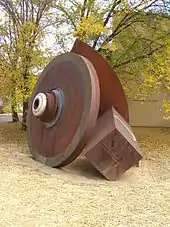 In 1955, Oliphant initiated the design and construction of a 500 megajoule homopolar generator (HPG), the world's largest. This massive machine contained three discs 3.5 metres (11 ft) in diameter and weighing 38 tonnes (37 long tons). He obtained £40,000 (equivalent to A$1,000,000 in 2018) initial funding from the Australian Atomic Energy Commission.[82] Completed in 1963, the HPG was intended to be the power source for a synchrotron, but this was not built.[83] Instead, it was used to power the LT-4 Tokamak and a large-scale railgun that was used as a scientific instrument for experiments with plasma physics. It was decommissioned in 1985.[23]