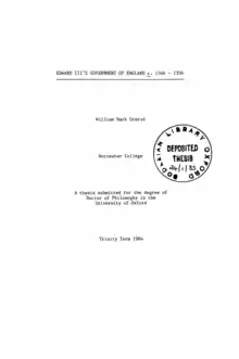 - Ormrod, W.M. (1984). Edward III's government of England, c.1346–1356 (DPhil). University of Oxford.