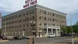 Mark Twain Hotel is a historic hotel building located at Hannibal, Marion County, Missouri. It was designed by Barnett, Haynes & Barnett and built in 1905. It is a four-story, Renaissance Revival style steel-frame structure with a granite foundation and beige pressed-brick exterior. The annex was built in 1918. It features semicircular arches over the main door and adjacent windows.[2]: 50–51