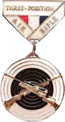 In the United States (U.S.), a marksmanship badge is a U.S. military badge or a civilian badge which is awarded to personnel upon successful completion of a weapons qualification course (known as marksmanship qualification badges) or high achievement in an official marksmanship competition (known as marksmanship competition badges). The U.S. Army and the U.S. Marine Corps are the only military services that award marksmanship qualification badges. However, marksmanship medals and/or marksmanship ribbons are awarded by the U.S. Navy, U.S. Coast Guard, and U.S. Air Force for weapons qualifications. For non-military personnel, different U.S. law enforcement organizations and the National Rifle Association (NRA) award marksmanship qualification badges to those involved in law enforcement. Additionally, the Civilian Marksmanship Program (CMP) and the NRA award marksmanship qualification badges to U.S. civilians. Most of these organizations and the U.S. National Guard award marksmanship competition badges to the people they support who succeed in official competitions.[1][2][3][4][5][6][7][8][9][10][11][12][13][14][15]