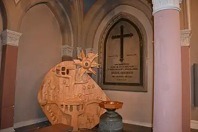 The Walcker organ is considered to be important.[4] The original organ was built in 1863 supplied by the company, Eberhard Friedrich Walcker from Ludwigsburg. It had 53 stops and a mechanical action. In 1900 the mechanical tracker action was replaced by a pneumatic action, in 1929 by an electro-pneumatic action, and finally in 1970 (Gebr. Oberlinger, Windesheim) by an electric organ with play and stop action.