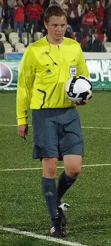Markus Strömbergsson (born 26 April 1975) is a Swedish football referee. Strömbergsson currently resides in Gävle. He was a full international referee for FIFA between 2006 and 2012. He became a professional referee in 1996 and has been an Allsvenskan referee since 2003. Strömbergsson has refereed 147 matches in Allsvenskan, 63 matches in Superettan and 47 international matches as of 2013.[1] He is the brother of Martin Strömbergsson.