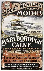 Marlborough GWR station became the focus for road traffic in the area, with horse buses at first along the Bath road; motor buses were introduced in 1904. Many of the bus services were operated by the GWR.[5]