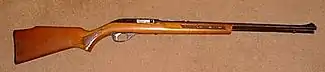 The Marlin Model 60, also known as the Marlin Glenfield Model 60, is a semi-automatic rifle that fires the .22 LR rimfire cartridge. Produced by Remington Arms in Huntsville, Alabama formerly in Mayfield, Kentucky, formerly by Marlin Firearms Company of North Haven, Connecticut, it was in continuous production from 1960 to 2020 and the company says it is the most popular rifle of its kind in the world.[3] Major features include a micro-groove barrel, a cross-bolt safety, hardwood stock with Monte Carlo comb, and brass or blued steel inner magazine tube. The Marlin Model 795 is a very similar rifle and based on the Marlin Model 60, changed only to accept a detachable box magazine.