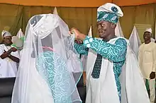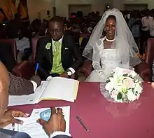 Marriage ceremonies within Africa vary greatly between countries due to the diversity of culture and religion throughout the continent. Africa has a population of over 1.2 billion people spread throughout 52 countries.[1] The large size and extreme diversity of the continent leads to enormous diversity among the marriage ceremonies and traditions that take place. Marriage ceremonies throughout Africa vary greatly depending on the faith of the individuals. The World Book Encyclopedia states that 40% of Africans identify as Christian while 45% are Muslim.[2]