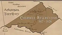 A year after the Louisiana Purchase, Congress began efforts to remove all tribes west of the Mississippi. By 1810, at the urging of the Secretary of War, large groups of Cherokees voluntarily moved to Arkansas and immediately found themselves fighting with the Osage who claimed this area as their hunting grounds. The 1817 Treaty of the Cherokee Agency created a designated area in Northwest Arkansas and it became the first Cherokee Reservation west of the Mississippi. To help with the conflict with the Osage the Cherokees invited the Shawnee to settle in the area of the Buffalo River.