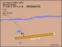 Marshall Don Hunter Sr. Airport (IATA: MLL[1], ICAO: PADM, FAA LID: MDM, formerly 3A5) is a state-owned public-use airport located two nautical miles (3.7 km) southeast of the central business district of Marshall, a city in the Kusilvak Census Area of the U.S. state of Alaska.[2]