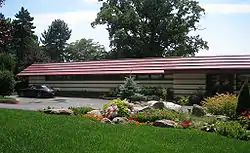 Throughout his career, Frank Lloyd Wright was interested in mass production of housing. In 1954, he discovered that Marshall Erdman, who contracted the First Unitarian Society of Madison, was selling modest prefabricated homes. Wright offered to design better prefabs, ones that he believed could be marketed for $15,000, which was half as much as Marshall Erdman and Associates, Inc. (ME&A) were charging for their own version.[1][2][3] Wright didn't do much on the project until late 1955, but by spring of 1956 he had final plans for three Usonian-type homes to be built exclusively by ME&A. The December 1956 issue of House & Home Magazine featured the Wright designed Marshall Erdman Prefab Houses and included Marshall in the cover story.[4] No examples of Prefab #3 were ever built.