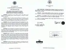 - "Declaration of Martial Law". Official Gazette of the Republic of the Philippines. Archived from the original on July 8, 2017. Retrieved September 9, 2018.