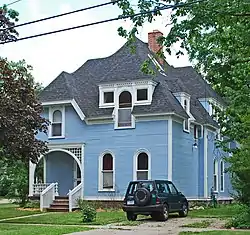 Martin W. Roberts was born in Batavia, New York and moved to Kalamazoo about 1870. Roberts was a prominent builder and architect in late nineteenth-century Kalamazoo. When he arrived in 19870, he constructed this house for his own use. The house itself is significant in that, more than his other designs, it likely reflected many of the architect's design values and personality. The house was originally designed as an Italianate structure. In 1886, Roberts re-made it into a Queen Anne design. Roberts lived here until his death in January, 1910. In the later 20th century, the house was converted into apartments.[2]