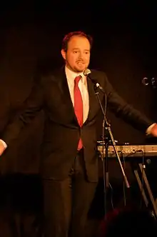 Martin White is an English musician, comedian and animator. As well as performing solo with an accordion around the London comedy circuit, White also fronts the Mystery Fax Machine Orchestra and the Karaoke Circus live bands.[1][2] He performs jingles regularly in the comedy podcast Answer Me This!.[3]