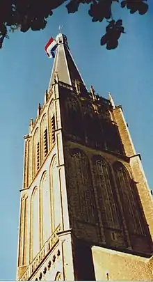 It was restored 1919–1930 by W. te Riele and N. de Wolf, and restored again after it was heavily damaged when retreating German troops blew up the tower in April 1945. [1] [2] [3]