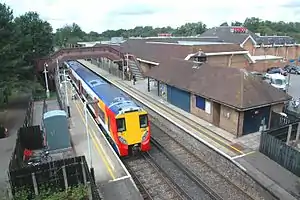 The station is accessed via the Tesco supermarket delivery access road and has a small car park for around 40 cars, along with 2 disabled spaces and cycle lockers. Unusually, as the car park is on land owned by the supermarket, there are no charges for parking, making it popular amongst commuters. Originally, the supermarket also allowed commuters to use the main supermarket car park, but in 2010 they implemented a 3-hour maximum parking time to discourage commuters[2] as the car park was getting too full. For similar reasons, most of the local side streets have a parking restriction between 11am and 12pm to discourage commuters leaving their cars in this residential area.