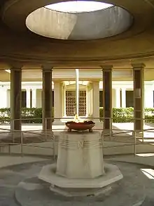 Two monuments have been built in Panama City to commemorate these events. One was built where the flagpole incident happened, the former Balboa High School, today a Panama Canal Authority building that bears the name of Ascanio Arosemena, known as the first "martyr" and maybe the most famous one. It was built by the Panama Canal Authority and consists on a covered entryway containing the memorial, which has a name of a "martyr" on each column, and an eternal fire (not unlike the eternal fire for U.S. President John F. Kennedy) in the middle, and the Panamanian flag afterwards, in a sort of open-to-the-sky (i.e. no roof) "square", on a flagpole.