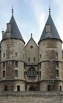 In 1794, after the Terror began, the government searched the sisters' apartments for two days; they found letters revealing their "crimes" against the Revolution, which included hostility to the Revolution, strong sympathies to the monarchy, and evidence that they continued to live as a community of consecrated Christian women.[9] They also found two letters written by "the unfortunate"[10] Mulot de la Ménardière to his cousin, Sister Euphrasia of the Immaculate Conception, containing unfavorable criticisms of the Revolution. Mulot was accused of helping them and of being a non-juring priest, even though he was married, and was arrested and imprisoned with the sisters.[11] On 22 June, the sisters and Mulot were arrested and locked up in the former convent of the Visitation, an improvised jail for political prisoners in Compiègne. On 10 July 1794, they were transferred to the Conciergerie Prison in Paris to await trial.[b][12][8] The sisters recanted their civic oath while in prison.[8][13]